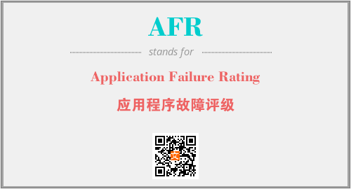 英文缩略词“AFR”经常作为“Application Failure Rating”的英文缩写来使用,中文表示:“应用程序故障评级”。本文将详细介绍英文缩写词AFR所代表英文单词,其对应的中文拼音、详细解释以及在英语中的流行度。此外,还有关于缩略词AFR的分类、应用领域及相关应用示例等。