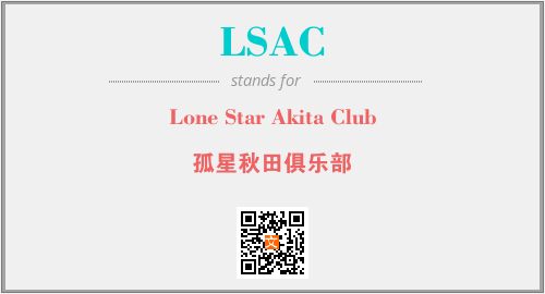英文缩略词“LSAC”经常作为“Lone Star Akita Club”的英文缩写来使用,中文表示:“孤星秋田俱乐部”。本文将详细介绍英文缩写词LSAC所代表英文单词,其对应的中文拼音、详细解释以及在英语中的流行度。此外,还有关于缩略词LSAC的分类、应用领域及相关应用示例等。