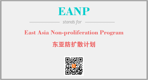 上述内容是“East Asia Non-proliferation Program”作为“EANP”的缩写,解释为“东亚防扩散计划”时的信息,以及英文缩略词EANP所代表的英文单词,其对应的中文拼音、详细解释以及在英文中的流行度和相关分类、应用领域及应用示例等。