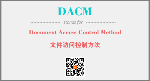 英文缩略词“DACM”经常作为“Document Access Control Method”的英文缩写来使用,中文表示:“文件访问控制方法”。本文将详细介绍英文缩写词DACM所代表英文单词,其对应的中文拼音、详细解释以及在英语中的流行度。此外,还有关于缩略词DACM的分类、应用领域及相关应用示例等。