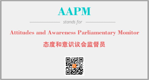 上述内容是“Attitudes and Awareness Parliamentary Monitor”作为“AAPM”的缩写,解释为“态度和意识议会监督员”时的信息,以及英文缩略词AAPM所代表的英文单词,其对应的中文拼音、详细解释以及在英文中的流行度和相关分类、应用领域及应用示例等。