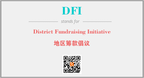 上述内容是“District Fundraising Initiative”作为“DFI”的缩写,解释为“地区筹款倡议”时的信息,以及英文缩略词DFI所代表的英文单词,其对应的中文拼音、详细解释以及在英文中的流行度和相关分类、应用领域及应用示例等。