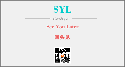 以上为See You Later英文缩略词SYL的中文解释,以及该英文缩写在英语的流行度、分类和应用领域方面的信息。