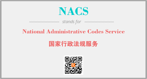 上述内容是“National Administrative Codes Service”作为“NACS”的缩写,解释为“国家行政法规服务”时的信息,以及英文缩略词NACS所代表的英文单词,其对应的中文拼音、详细解释以及在英文中的流行度和相关分类、应用领域及应用示例等。
