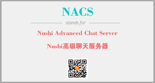 上述内容是“Nushi Advanced Chat Server”作为“NACS”的缩写,解释为“Nushi高级聊天服务器”时的信息,以及英文缩略词NACS所代表的英文单词,其对应的中文拼音、详细解释以及在英文中的流行度和相关分类、应用领域及应用示例等。