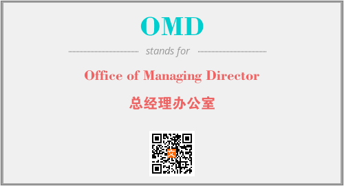 上述内容是“Office of Managing Director”作为“OMD”的缩写,解释为“总经理办公室”时的信息,以及英文缩略词OMD所代表的英文单词,其对应的中文拼音、详细解释以及在英文中的流行度和相关分类、应用领域及应用示例等。