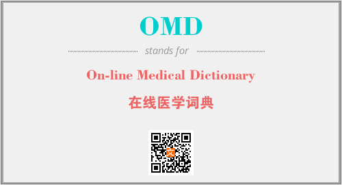 上述内容是“On-line Medical Dictionary”作为“OMD”的缩写,解释为“在线医学词典”时的信息,以及英文缩略词OMD所代表的英文单词,其对应的中文拼音、详细解释以及在英文中的流行度和相关分类、应用领域及应用示例等。