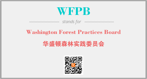 上述内容是“Washington Forest Practices Board”作为“WFPB”的缩写,解释为“华盛顿森林实践委员会”时的信息,以及英文缩略词WFPB所代表的英文单词,其对应的中文拼音、详细解释以及在英文中的流行度和相关分类、应用领域及应用示例等。