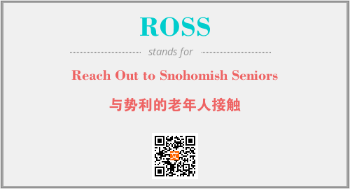 上述内容是“Reach Out to Snohomish Seniors”作为“ROSS”的缩写,解释为“与势利的老年人接触”时的信息,以及英文缩略词ROSS所代表的英文单词,其对应的中文拼音、详细解释以及在英文中的流行度和相关分类、应用领域及应用示例等。