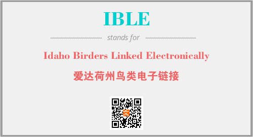 上述内容是“Idaho Birders Linked Electronically”作为“IBLE”的缩写,解释为“爱达荷州鸟类电子链接”时的信息,以及英文缩略词IBLE所代表的英文单词,其对应的中文拼音、详细解释以及在英文中的流行度和相关分类、应用领域及应用示例等。