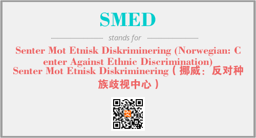 上述内容是“Senter Mot Etnisk Diskriminering (Norwegian: Center Against Ethnic Discrimination)”作为“SMED”的缩写,解释为“Senter Mot Etnisk Diskriminering(挪威:反对种族歧视中心)”时的信息,以及英文缩略词SMED所代表的英文单词,其对应的中文拼音、详细解释以及在英文中的流行度和相关分类、应用领域及应用示例等。