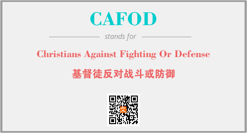 上述内容是“Christians Against Fighting Or Defense”作为“CAFOD”的缩写,解释为“基督徒反对战斗或防御”时的信息,以及英文缩略词CAFOD所代表的英文单词,其对应的中文拼音、详细解释以及在英文中的流行度和相关分类、应用领域及应用示例等。