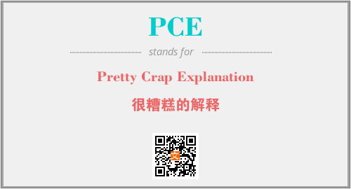 以上为Pretty Crap Explanation英文缩略词PCE的中文解释,以及该英文缩写在英语的流行度、分类和应用领域方面的信息。