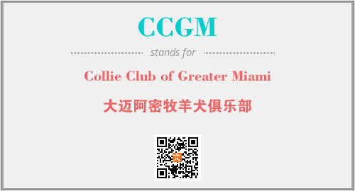上述内容是“Collie Club of Greater Miami”作为“CCGM”的缩写,解释为“大迈阿密牧羊犬俱乐部”时的信息,以及英文缩略词CCGM所代表的英文单词,其对应的中文拼音、详细解释以及在英文中的流行度和相关分类、应用领域及应用示例等。