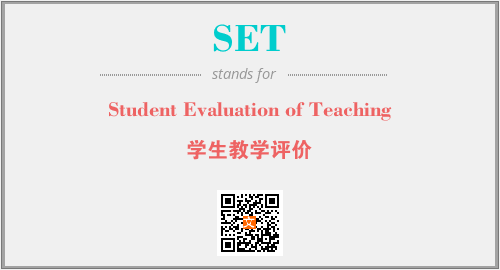 上述内容是“Student Evaluation of Teaching”作为“SET”的缩写,解释为“学生教学评价”时的信息,以及英文缩略词SET所代表的英文单词,其对应的中文拼音、详细解释以及在英文中的流行度和相关分类、应用领域及应用示例等。
