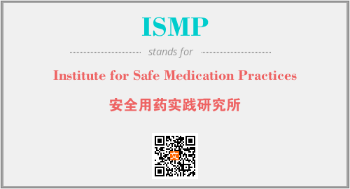 英文缩略词“ISMP”经常作为“Institute for Safe Medication Practices”的英文缩写来使用,中文表示:“安全用药实践研究所”。本文将详细介绍英文缩写词ISMP所代表英文单词,其对应的中文拼音、详细解释以及在英语中的流行度。此外,还有关于缩略词ISMP的分类、应用领域及相关应用示例等。