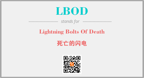 英文缩略词“LBOD”经常作为“Lightning Bolts Of Death”的英文缩写来使用,中文表示:“死亡的闪电”。本文将详细介绍英文缩写词LBOD所代表英文单词,其对应的中文拼音、详细解释以及在英语中的流行度。此外,还有关于缩略词LBOD的分类、应用领域及相关应用示例等。