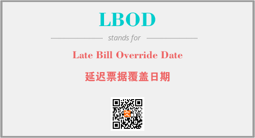 上述内容是“Late Bill Override Date”作为“LBOD”的缩写,解释为“延迟票据覆盖日期”时的信息,以及英文缩略词LBOD所代表的英文单词,其对应的中文拼音、详细解释以及在英文中的流行度和相关分类、应用领域及应用示例等。