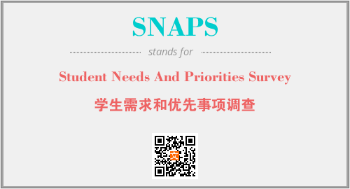 上述内容是“Student Needs And Priorities Survey”作为“SNAPS”的缩写,解释为“学生需求和优先事项调查”时的信息,以及英文缩略词SNAPS所代表的英文单词,其对应的中文拼音、详细解释以及在英文中的流行度和相关分类、应用领域及应用示例等。