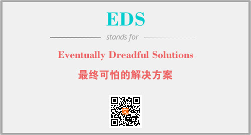 上述内容是“Eventually Dreadful Solutions”作为“EDS”的缩写,解释为“最终可怕的解决方案”时的信息,以及英文缩略词EDS所代表的英文单词,其对应的中文拼音、详细解释以及在英文中的流行度和相关分类、应用领域及应用示例等。