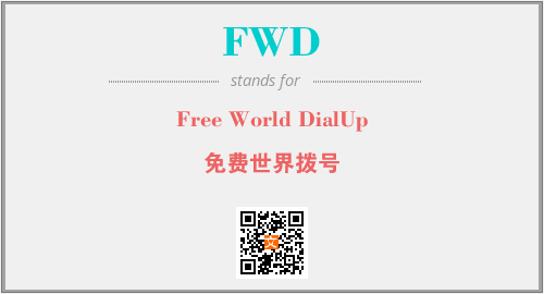 上述内容是“Free World DialUp”作为“FWD”的缩写,解释为“免费世界拨号”时的信息,以及英文缩略词FWD所代表的英文单词,其对应的中文拼音、详细解释以及在英文中的流行度和相关分类、应用领域及应用示例等。