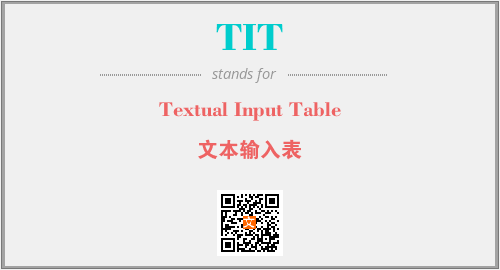 上述内容是“Textual Input Table”作为“TIT”的缩写,解释为“文本输入表”时的信息,以及英文缩略词TIT所代表的英文单词,其对应的中文拼音、详细解释以及在英文中的流行度和相关分类、应用领域及应用示例等。