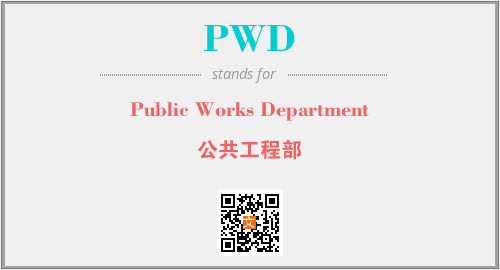 英文缩略词“PWD”经常作为“Public Works Department”的英文缩写来使用,中文表示:“公共工程部”。本文将详细介绍英文缩写词PWD所代表英文单词,其对应的中文拼音、详细解释以及在英语中的流行度。此外,还有关于缩略词PWD的分类、应用领域及相关应用示例等。