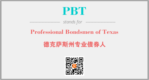 以上为Professional Bondsmen of Texas英文缩略词PBT的中文解释,以及该英文缩写在英语的流行度、分类和应用领域方面的信息。