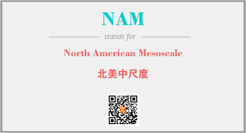 上述内容是“North American Mesoscale”作为“NAM”的缩写,解释为“北美中尺度”时的信息,以及英文缩略词NAM所代表的英文单词,其对应的中文拼音、详细解释以及在英文中的流行度和相关分类、应用领域及应用示例等。