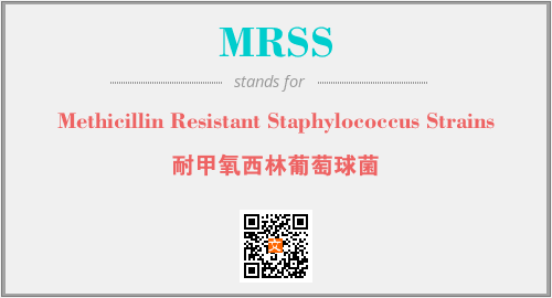 上述内容是“Methicillin Resistant Staphylococcus Strains”作为“MRSS”的缩写,解释为“耐甲氧西林葡萄球菌”时的信息,以及英文缩略词MRSS所代表的英文单词,其对应的中文拼音、详细解释以及在英文中的流行度和相关分类、应用领域及应用示例等。