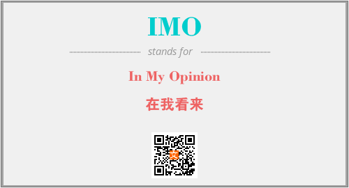 以上为In My Opinion英文缩略词IMO的中文解释,以及该英文缩写在英语的流行度、分类和应用领域方面的信息。