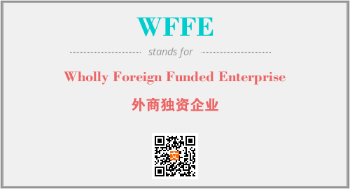上述内容是“Wholly Foreign Funded Enterprise”作为“WFFE”的缩写,解释为“外商独资企业”时的信息,以及英文缩略词WFFE所代表的英文单词,其对应的中文拼音、详细解释以及在英文中的流行度和相关分类、应用领域及应用示例等。