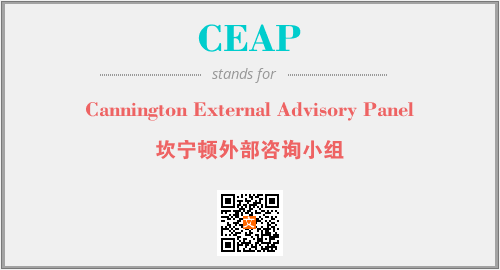 上述内容是“Cannington External Advisory Panel”作为“CEAP”的缩写,解释为“坎宁顿外部咨询小组”时的信息,以及英文缩略词CEAP所代表的英文单词,其对应的中文拼音、详细解释以及在英文中的流行度和相关分类、应用领域及应用示例等。