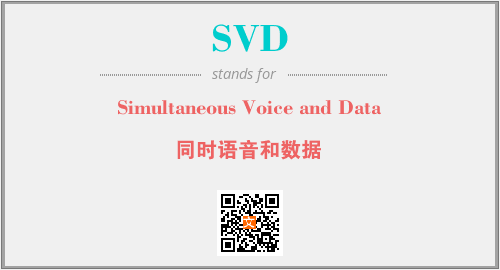 英文缩略词“SVD”经常作为“Simultaneous Voice and Data”的英文缩写来使用,中文表示:“同时语音和数据”。本文将详细介绍英文缩写词SVD所代表英文单词,其对应的中文拼音、详细解释以及在英语中的流行度。此外,还有关于缩略词SVD的分类、应用领域及相关应用示例等。