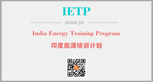 英文缩略词“IETP”经常作为“India Energy Training Program”的英文缩写来使用,中文表示:“印度能源培训计划”。本文将详细介绍英文缩写词IETP所代表英文单词,其对应的中文拼音、详细解释以及在英语中的流行度。此外,还有关于缩略词IETP的分类、应用领域及相关应用示例等。