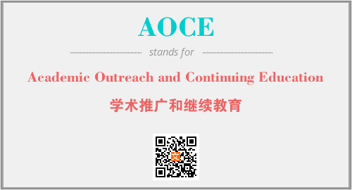 以上为Academic Outreach and Continuing Education英文缩略词AOCE的中文解释,以及该英文缩写在英语的流行度、分类和应用领域方面的信息。
