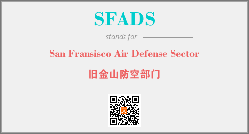 上述内容是“San Fransisco Air Defense Sector”作为“SFADS”的缩写,解释为“旧金山防空部门”时的信息,以及英文缩略词SFADS所代表的英文单词,其对应的中文拼音、详细解释以及在英文中的流行度和相关分类、应用领域及应用示例等。