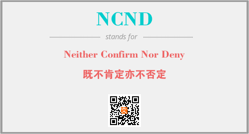 以上为Neither Confirm Nor Deny英文缩略词NCND的中文解释,以及该英文缩写在英语的流行度、分类和应用领域方面的信息。