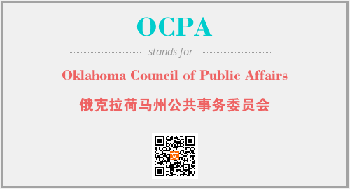 以上为Oklahoma Council of Public Affairs英文缩略词OCPA的中文解释,以及该英文缩写在英语的流行度、分类和应用领域方面的信息。