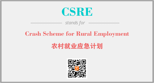 上述内容是“Crash Scheme for Rural Employment”作为“CSRE”的缩写,解释为“农村就业应急计划”时的信息,以及英文缩略词CSRE所代表的英文单词,其对应的中文拼音、详细解释以及在英文中的流行度和相关分类、应用领域及应用示例等。