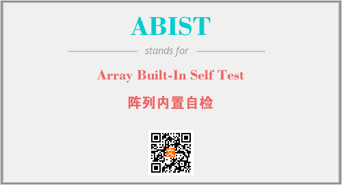 英文缩略词“ABIST”经常作为“Array Built-In Self Test”的英文缩写来使用,中文表示:“阵列内置自检”。本文将详细介绍英文缩写词ABIST所代表英文单词,其对应的中文拼音、详细解释以及在英语中的流行度。此外,还有关于缩略词ABIST的分类、应用领域及相关应用示例等。