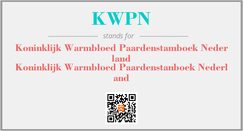 上述内容是“Koninklijk Warmbloed Paardenstamboek Nederland”作为“KWPN”的缩写,解释为“Koninklijk Warmbloed Paardenstanboek Nederland”时的信息,以及英文缩略词KWPN所代表的英文单词,其对应的中文拼音、详细解释以及在英文中的流行度和相关分类、应用领域及应用示例等。