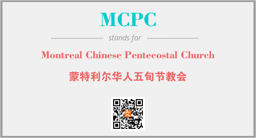 以上为Montreal Chinese Pentecostal Church英文缩略词MCPC的中文解释,以及该英文缩写在英语的流行度、分类和应用领域方面的信息。