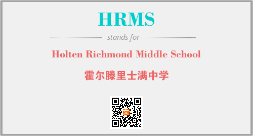上述内容是“Holten Richmond Middle School”作为“HRMS”的缩写,解释为“霍尔滕里士满中学”时的信息,以及英文缩略词HRMS所代表的英文单词,其对应的中文拼音、详细解释以及在英文中的流行度和相关分类、应用领域及应用示例等。