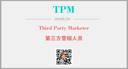 英文缩略词“TPM”经常作为“Third Party Marketer”的英文缩写来使用,中文表示:“第三方营销人员”。本文将详细介绍英文缩写词TPM所代表英文单词,其对应的中文拼音、详细解释以及在英语中的流行度。此外,还有关于缩略词TPM的分类、应用领域及相关应用示例等。