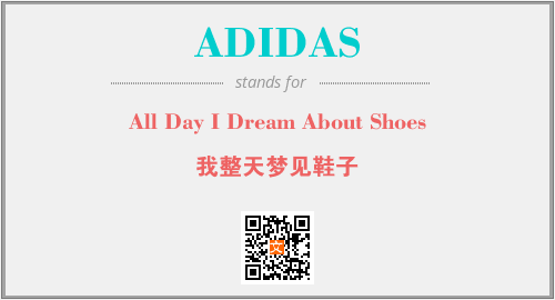 以上为All Day I Dream About Shoes英文缩略词ADIDAS的中文解释,以及该英文缩写在英语的流行度、分类和应用领域方面的信息。