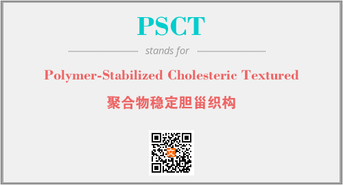 上述内容是“Polymer-Stabilized Cholesteric Textured”作为“PSCT”的缩写,解释为“聚合物稳定胆甾织构”时的信息,以及英文缩略词PSCT所代表的英文单词,其对应的中文拼音、详细解释以及在英文中的流行度和相关分类、应用领域及应用示例等。