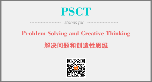 上述内容是“Problem Solving and Creative Thinking”作为“PSCT”的缩写,解释为“解决问题和创造性思维”时的信息,以及英文缩略词PSCT所代表的英文单词,其对应的中文拼音、详细解释以及在英文中的流行度和相关分类、应用领域及应用示例等。