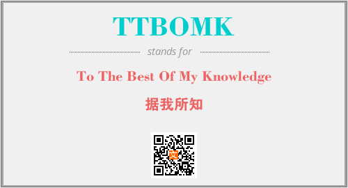 上述内容是“To The Best Of My Knowledge”作为“TTBOMK”的缩写,解释为“据我所知”时的信息,以及英文缩略词TTBOMK所代表的英文单词,其对应的中文拼音、详细解释以及在英文中的流行度和相关分类、应用领域及应用示例等。