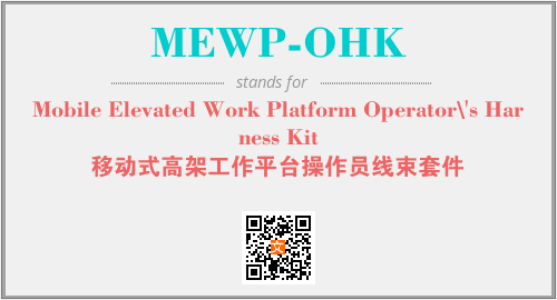 英文缩略词“MEWP-OHK”经常作为“Mobile Elevated Work Platform Operator\'s Harness Kit”的英文缩写来使用,中文表示:“移动式高架工作平台操作员线束套件”。本文将详细介绍英文缩写词MEWP-OHK所代表英文单词,其对应的中文拼音、详细解释以及在英语中的流行度。此外,还有关于缩略词MEWP-OHK的分类、应用领域及相关应用示例等。